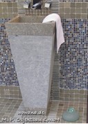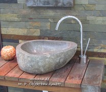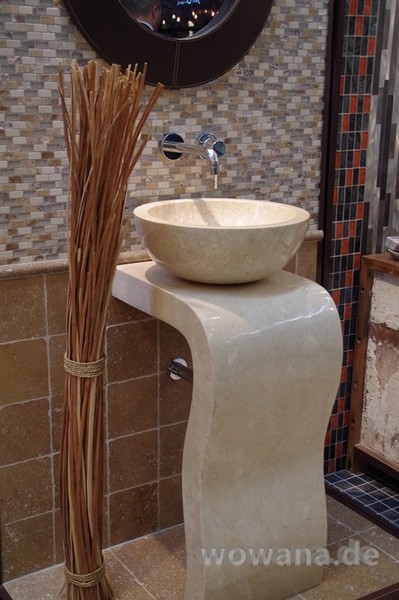 Die Natursteinwaschbecken variieren oft in Form und Abmaße sowie Farbe und Struktur.